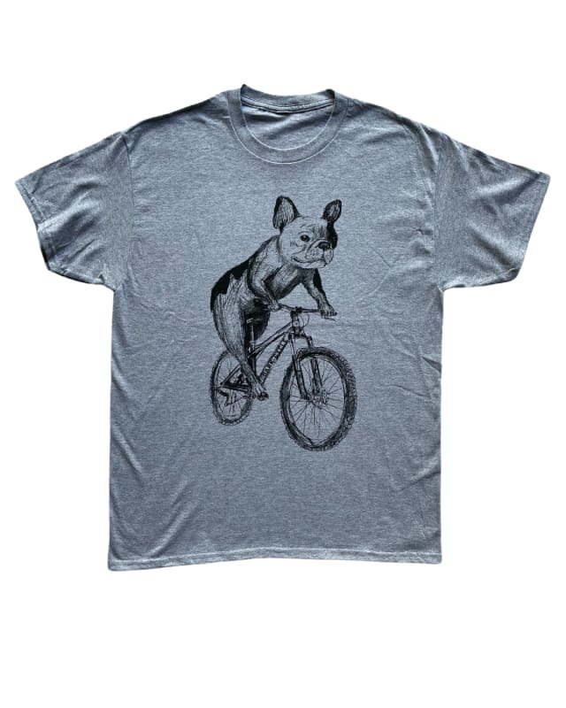 Choose the 70's Vintage Tee in Tri-Grey to elevate your fashion with a playful French Bulldog on a Bicycle design. This tee goes beyond just clothing; it's a wearable piece of art that speaks to your individuality. Embrace comfort and style, and rest easy knowing that our tees are made to withstand repeated washing, ensuring longevity in your wardrobe.