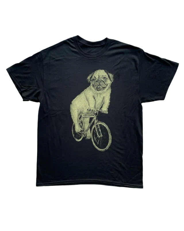 Elevate your fashion game with our Hand-Drawn Pug on a Bicycle Men's/Unisex Shirt – where art meets wearability. Shop now to add this unique piece to your collection and make a statement with your style!